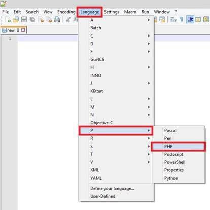 a. Start a new project within Notepad++. From the menu select Language > P > PHP.