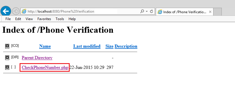 a. Navigate to your web development server in your browser and click on the project folder. (In this example we are using WAMP.)