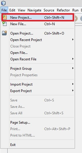 a. Start a new project with NetBeans. Select the File > New Project.