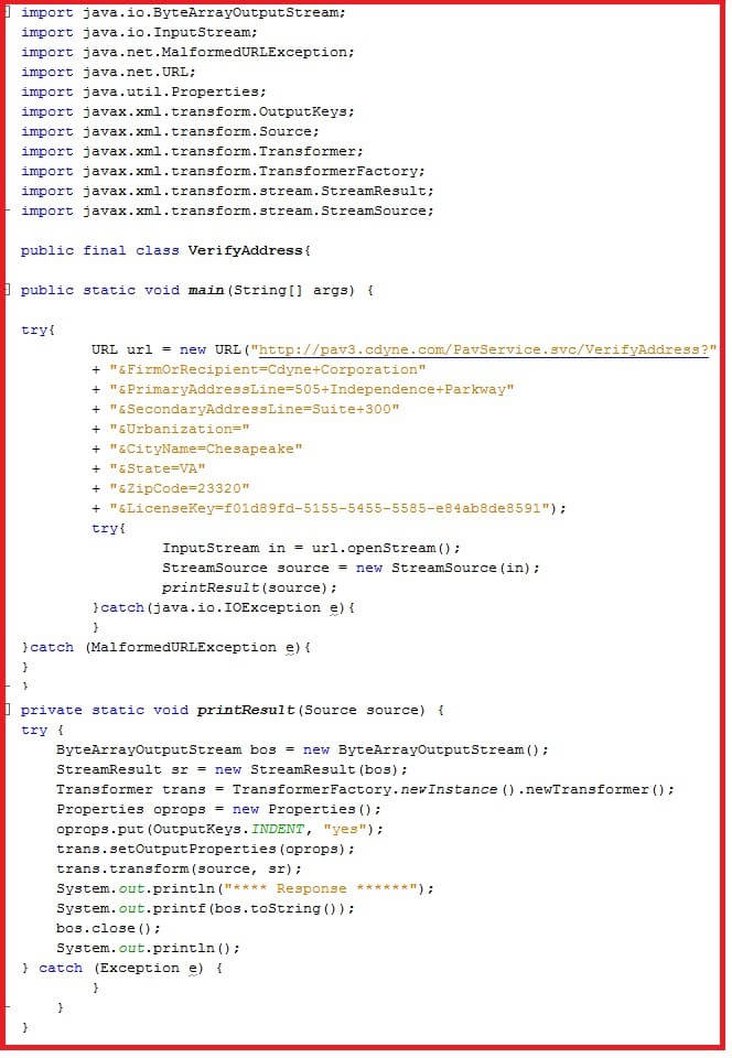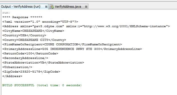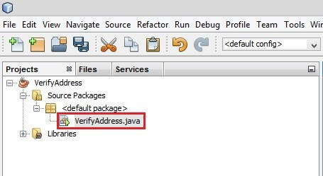 d. Expand the project: VerifyAddress > Source Packages > default packages > VerifyAddress.java and double click. The file will open within the IDE.