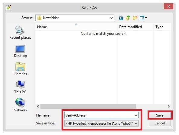 Tip: Ensure the file is saved as a .php file type.