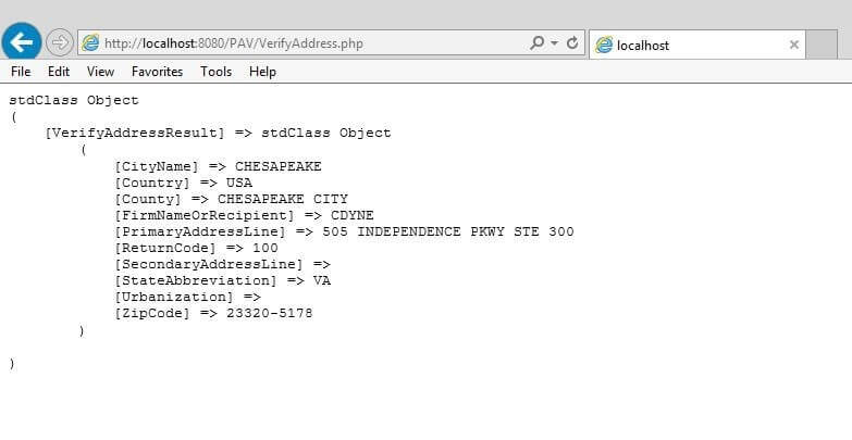 3. Call the desired PAV Address Verification method.