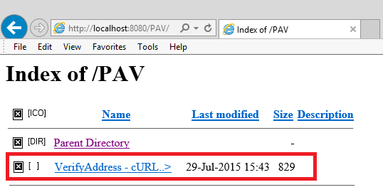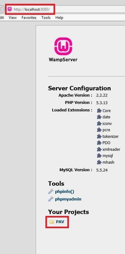 a. Navigate to your web development server in your browser and click on the project folder. (In this example we are using WAMP.)