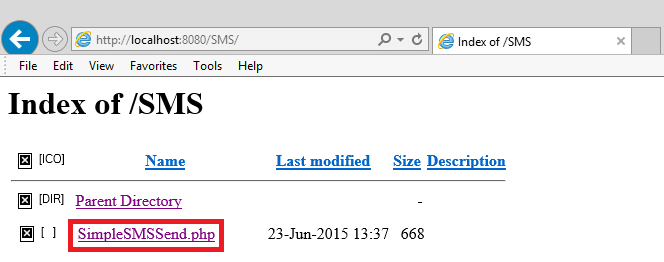 a. Navigate to your web development server in your browser and click on the project folder. (In this example we are using WAMP.)