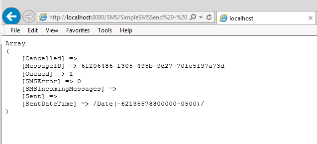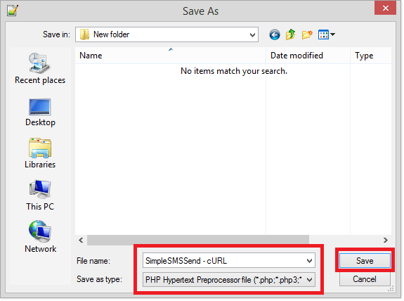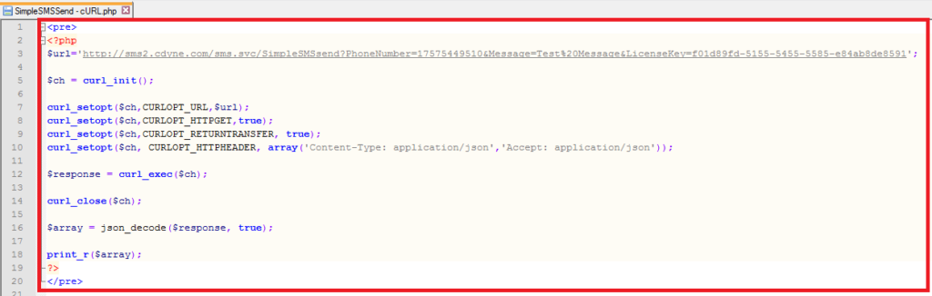b. Add the request code for the SMS method of the API. (In this example we are using PHP with cURL.)