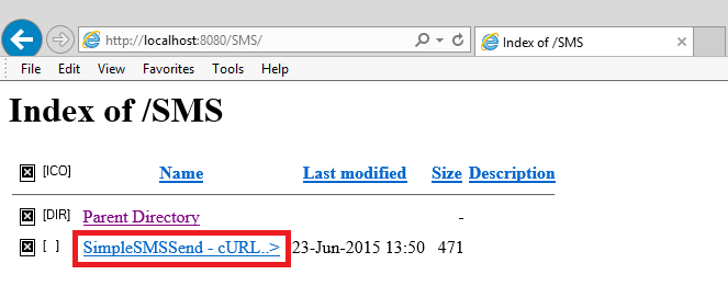 a. Navigate to your web development server in your browser and click on the project folder. (In this example we are using WAMP.)