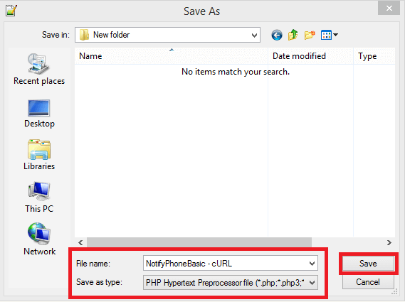 c. Once you have added all the request codes save the file as shown in diagram. Tip: Make sure the file is saved as a .php file type.